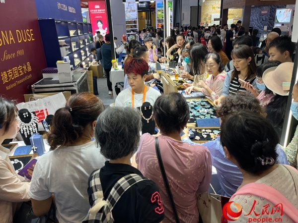 參觀者在第三屆消博會現(xiàn)場選購商品。人民網(wǎng)記者 許崢攝