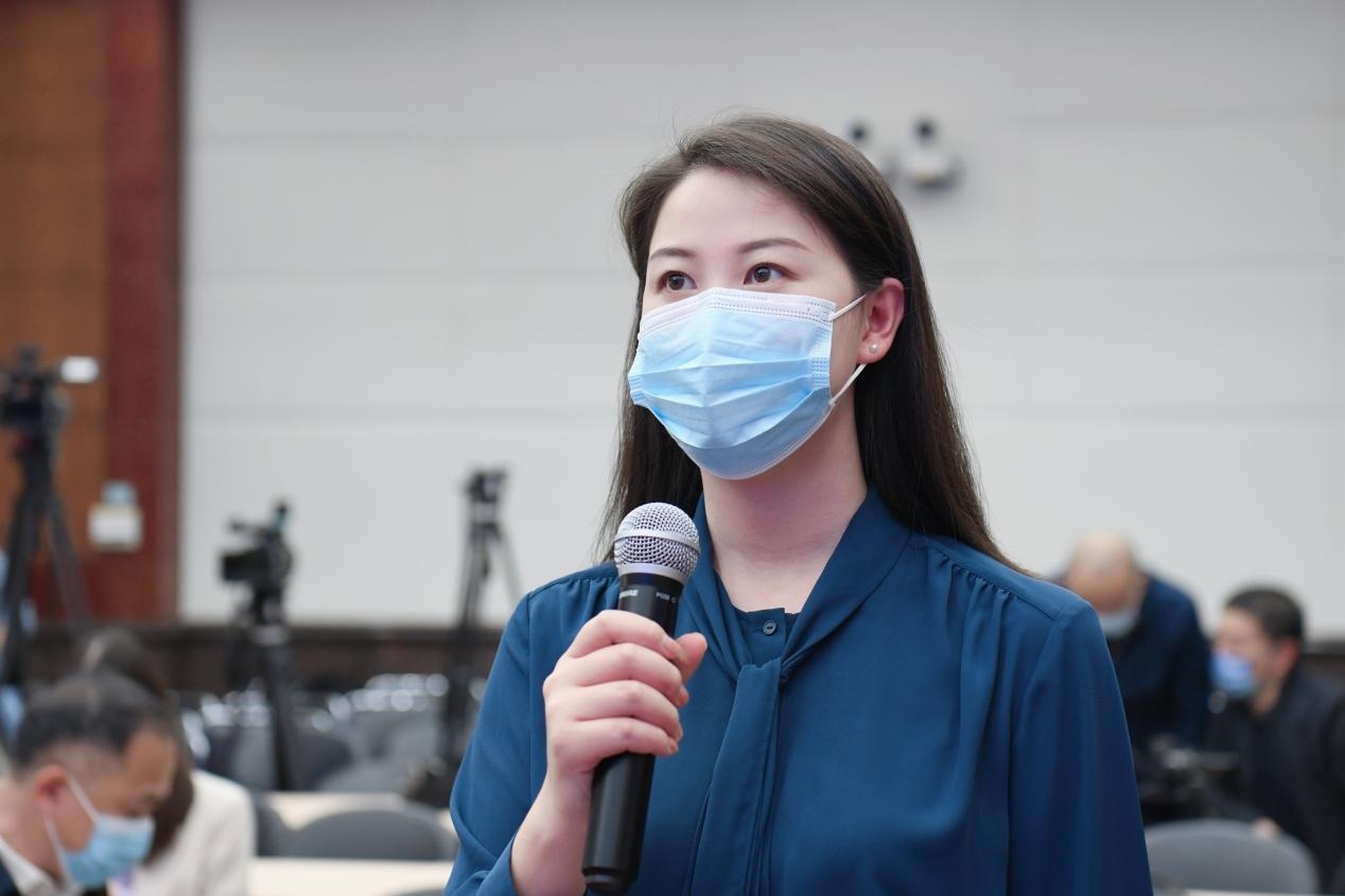 人民網記者任妍在2023年一季度財政收支情況新聞發(fā)布會上提問。中國財經報余波 攝
