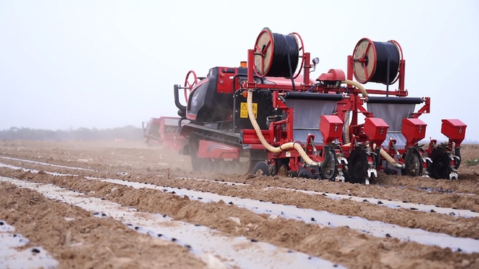 標準化的播種為后續(xù)管理提供了便利?!安シN的質(zhì)量、深度、行距和直線距離都非常標準,這樣后期管理和收獲時都可以使用標準化的機械,形成從種植到管理到收獲一條龍機械化操作,預(yù)計整個管理期節(jié)約人工60%以上?!眹姨厣卟水a(chǎn)業(yè)體系德州市綜合實驗站站長、德州市農(nóng)科院副院長張自坤介紹,直播機在播種的同時還能進行起壟、打孔、覆膜、鋪設(shè)滴灌帶等工作,方便后期的水肥管理,實現(xiàn)節(jié)水節(jié)肥。