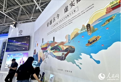 “我們對北京中軸線的場景進(jìn)行了復(fù)刻,構(gòu)筑了中軸線元宇宙,如果游客觀光北京中軸線上的打卡點,用手機(jī)掃描眼前的景色,就會出現(xiàn)現(xiàn)實與虛擬交織的場景,仿佛穿越古今,置身于千百年前的時空?!北本┖訄D公司工作人員陳頌在展會現(xiàn)場介紹說。