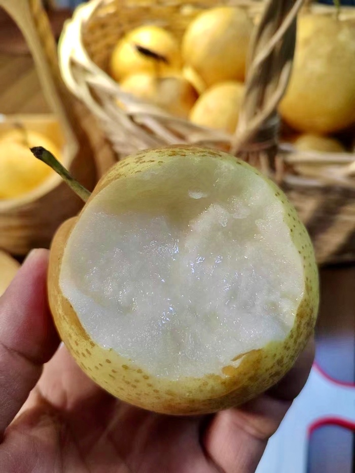 “黃金梨堅持有機種植,在避免農殘的同時,也努力還原出自然的口感,酸甜適口,汁水豐潤?!崩蠲鳚烧f。