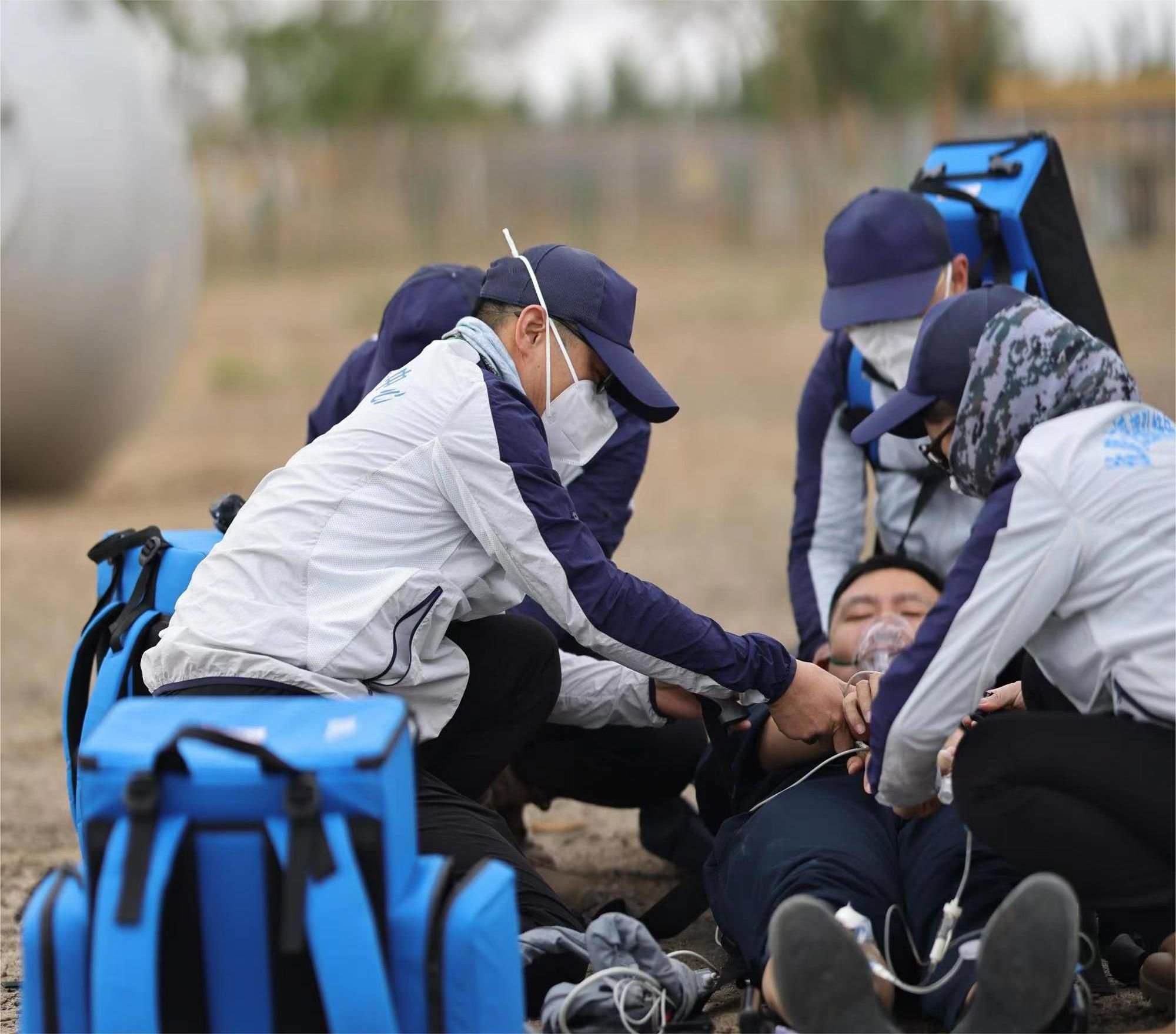 “習(xí)主席指出,打仗在某種意義上講就是打保障。作為醫(yī)療救護(hù)隊(duì),保障航天員的生命安全就是打勝仗,只要存在0.01%的危險(xiǎn),我們就必須做到100%的準(zhǔn)備?!鄙裰圯d人飛行任務(wù)醫(yī)療救護(hù)隊(duì)隊(duì)長(zhǎng)顧建文介紹道。主著陸場(chǎng)涵蓋沙漠、丘陵、湖泊、戈壁等復(fù)雜地形,為順利完成任務(wù),率隊(duì)到達(dá)著陸場(chǎng)的這些天,顧建文一刻也沒有休息。他帶領(lǐng)醫(yī)療隊(duì)員乘坐直升機(jī)機(jī)動(dòng)1800公里,飛越巴丹吉林沙漠,全面考察地形地貌,細(xì)致完善救治方案,實(shí)地調(diào)研后支醫(yī)院應(yīng)急醫(yī)療準(zhǔn)備情況。