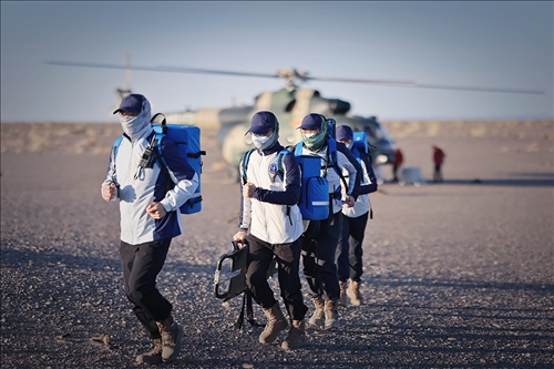 醫(yī)學(xué)急救“白金10分鐘、黃金1小時(shí)”,針對(duì)可能出現(xiàn)的飛船返回偏離落點(diǎn),落在沙漠、山地、湖泊,搜救直升機(jī)無法降落,車輛無法進(jìn)入的情況,為快速到達(dá)著陸地點(diǎn),醫(yī)療救護(hù)隊(duì)員每天隨身攜帶艙前急救設(shè)備堅(jiān)持訓(xùn)練六七個(gè)小時(shí),負(fù)重在沙漠、山地中奔跑,爭(zhēng)取最短時(shí)間展開緊急救治。夏日戈壁驕陽(yáng)似火,風(fēng)沙彌漫,訓(xùn)練一天下來,隊(duì)員們耳朵眼里都是沙土,臉上脖子全是泥印,一個(gè)個(gè)都成了泥人。茫茫大草原記錄了神舟載人飛行任務(wù)醫(yī)療隊(duì)員們一次次醫(yī)療救護(hù)空地協(xié)同演練、全域協(xié)同演練的身影……