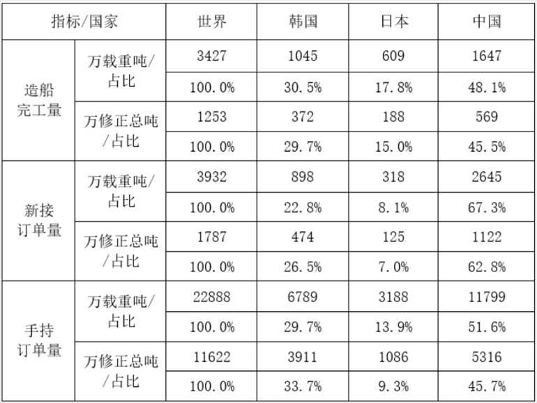 另?yè)?jù)數(shù)據(jù)顯示,1-5月,全國(guó)造船完工量569萬修正總噸,同比增長(zhǎng)29%;新承接船舶訂單量1122萬修正總噸,同比增長(zhǎng)24.2%。截至5月底,手持船舶訂單量5316萬修正總噸,同比增長(zhǎng)27.4%。按修正總噸計(jì),中國(guó)造船完工量、新接訂單量、手持訂單量分別占世界市場(chǎng)份額的45.5%、62.8%和45.7%。
