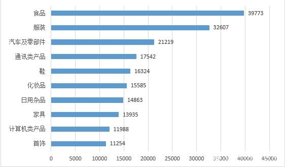 圖4商品細分領域投訴前十位(單位:件)