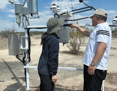 李生宇(右)給學(xué)生講解如何使用輻射觀測儀。吳月輝攝