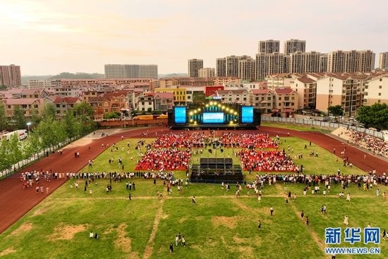 江西省吉安市萬安縣城北體育公園,鄉(xiāng)村音樂會現(xiàn)場人潮涌動。新華網(wǎng)發(fā) 邱哲 攝