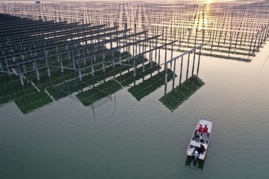 江蘇宿遷天崗湖,國網(wǎng)宿遷供電公司員工走進(jìn)光伏基地檢查發(fā)電上網(wǎng)設(shè)備(2月15日攝)。新華社發(fā)(王松竹攝)