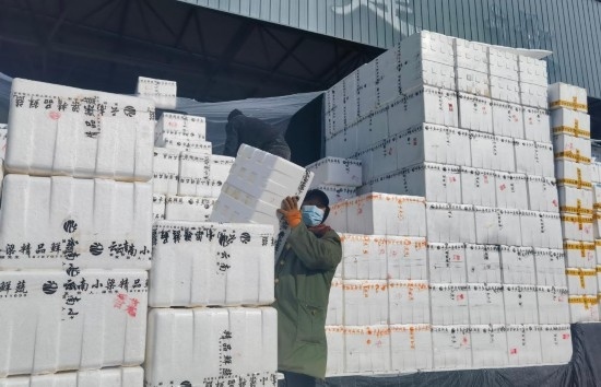 “車來嘍!”“往里倒,再倒,好,裝車!”盡管天氣寒冷,市場(chǎng)里卻是一片火熱的繁忙景象。從各地運(yùn)來的蔬菜陸續(xù)進(jìn)場(chǎng),工作人員手腳麻利地將成箱的蔬菜從大車上卸下再裝上小車,隨后,這些蔬菜將運(yùn)往寧夏各地小型批發(fā)市場(chǎng)和商超?!盀榱耸卟嗽谶\(yùn)輸過程中不被凍壞,我們給蔬菜蓋了3層棉被,確實(shí)下了一番功夫?!鄙虘赳R伏珍說。