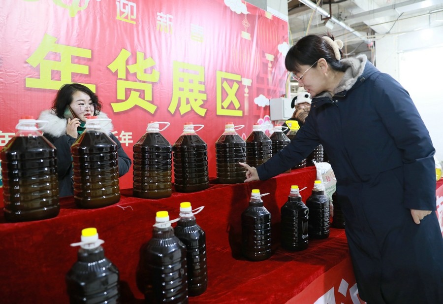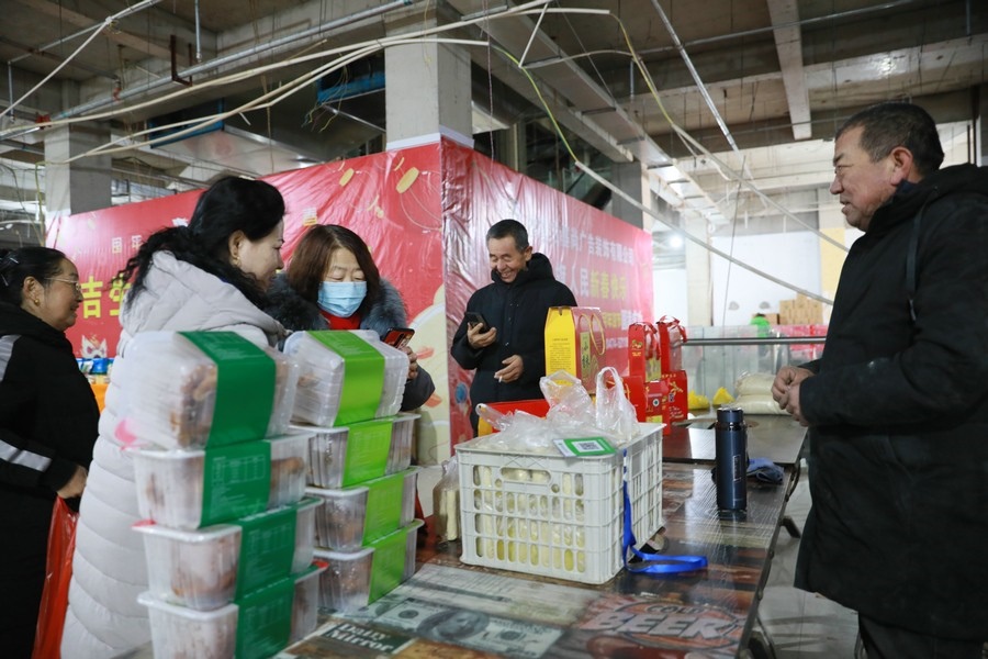 烏蘭花鎮(zhèn)居民年貨節(jié)上選購(gòu)年貨商品