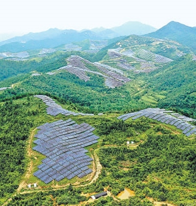 迎著春日的晨光,走進(jìn)湖北隨州廣水市十里街道寶林寺村,滿是光伏板的向陽山坡,像一面巨大的鏡子,在陽光下熠熠生輝。