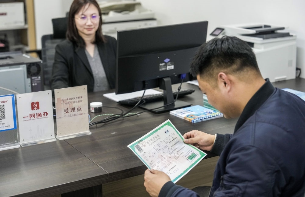 2024年3月8日,市民在位于上海市檔案館的長三角地區(qū)民生檔案異地查檔受理點查詢出生醫(yī)學證明檔案。新華社發(fā)(陳夢澤 攝)
