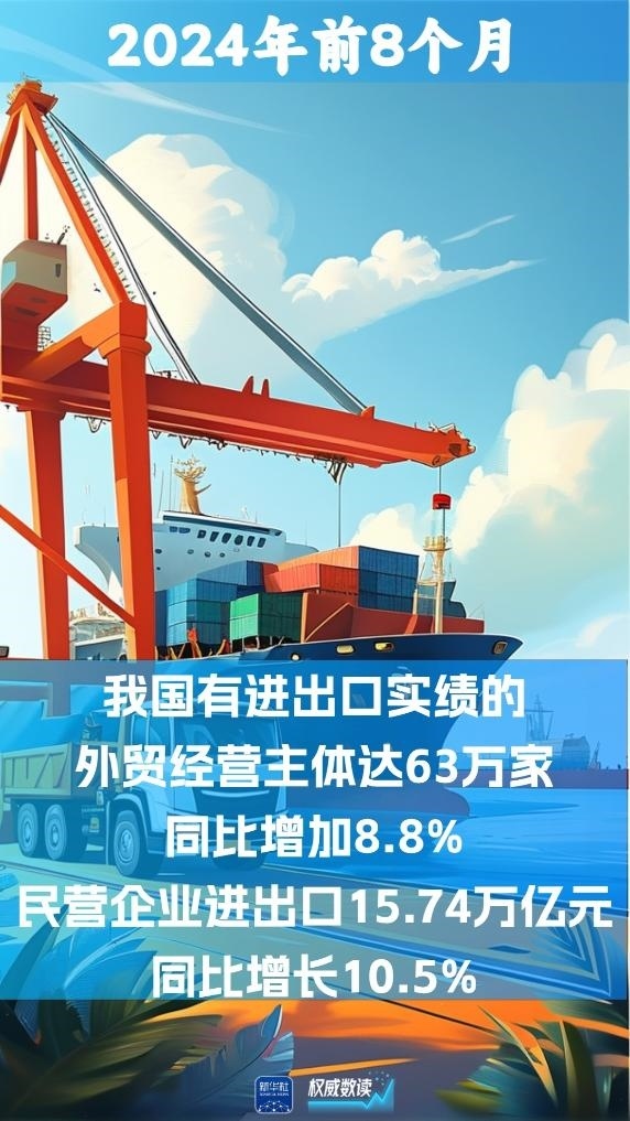 我國外貿(mào)經(jīng)營主體持續(xù)活躍,前8個(gè)月有進(jìn)出口實(shí)績的外貿(mào)經(jīng)營主體達(dá)63萬家,同比增加8.8%。其中,外貿(mào)主力軍民營企業(yè)進(jìn)出口15.74萬億元。