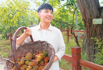 去年9月,湯鑫晨創(chuàng)立了“就就就”水果品牌,意思是“就回農(nóng)村、就種地、就搞農(nóng)業(yè)”,這一品牌理念折射出他回村創(chuàng)業(yè)的信心和干勁。通過在社交媒體平臺發(fā)布回鄉(xiāng)創(chuàng)業(yè)的視頻,湯鑫晨的經(jīng)歷吸引了許多網(wǎng)友圍觀,全網(wǎng)播放量突破上千萬次,2023年度線上銷售額達(dá)到300萬元,也幫助村里的一些農(nóng)戶拓展了銷售渠道。