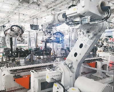 在繁榮廠區(qū),這樣的工業(yè)智能機器人還有很多,通過機器人間的協(xié)作,實現(xiàn)整車前后風擋玻璃、輪胎、座椅等全自動裝配,機艙管路、胎壓等實現(xiàn)在線全自動檢測。焊裝車間自動化率達到100%,涂膠自動化率達到97%,總裝自動化率達到30%。