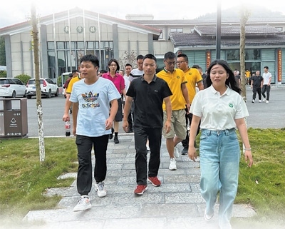 湖北省來鳳縣舊司鎮(zhèn),班主任(前排右一)帶領(lǐng)學員參觀全國鄉(xiāng)村治理示范村新街村。田 根攝(人民視覺)