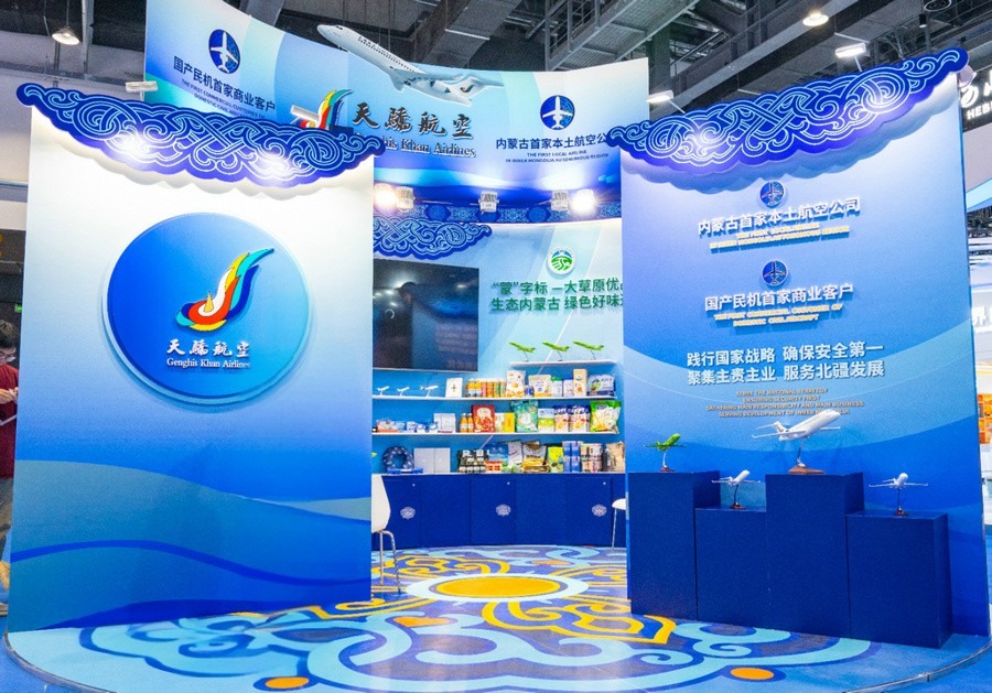 本次會(huì)展天驕航空以“天驕新風(fēng)貌 聚焦內(nèi)蒙古”為主題,以濃郁的內(nèi)蒙古元素為特色,突出天驕航空作為內(nèi)蒙古自治區(qū)本土航空公司在完善區(qū)內(nèi)航線網(wǎng)絡(luò)、助推民航產(chǎn)業(yè)落地、服務(wù)地方經(jīng)濟(jì)發(fā)展等方面做出的努力,以及作為全國(guó)首家運(yùn)營(yíng)純國(guó)產(chǎn)民機(jī)機(jī)隊(duì)的航空運(yùn)輸企業(yè),在國(guó)產(chǎn)民機(jī)的商業(yè)運(yùn)營(yíng)、品牌推廣等方面進(jìn)行的探索。