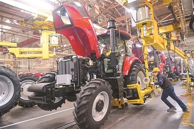 新年伊始,工人在河南省洛陽市一家拖拉機生產企業(yè)車間工作。