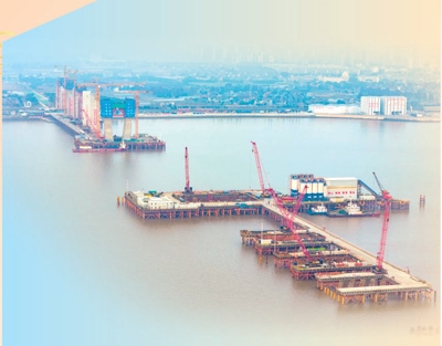 寒風(fēng)勁吹,杭州灣跨海鐵路大橋建設(shè)現(xiàn)場依舊熱火朝天,千余名建設(shè)者正在緊張地進行大橋橋墩墩身施工作業(yè)。
