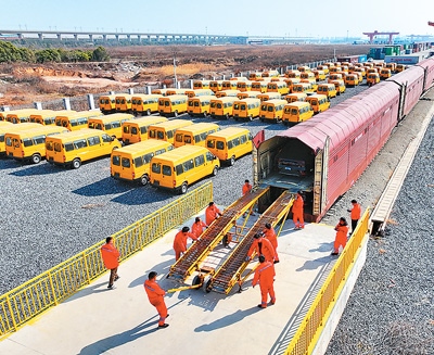 日前,搭載著290臺“江西制造”新能源汽車的中歐班列駛出南昌國際陸港,經霍爾果斯口岸出境運抵哈薩克斯坦、烏茲別克斯坦等國家銷售。