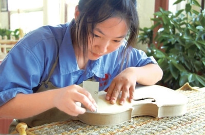 陳鳳軍身后的墻上,懸掛著一幅世界著名制琴大師斯特拉迪瓦里所制作的老琴圖片。閑暇時,他總會抬頭凝視,仔細(xì)研究它的每一處細(xì)節(jié)?!耙话迅纫话押?,做琴是永遠(yuǎn)學(xué)不完的”,如今他已經(jīng)斬獲了多項(xiàng)國際制琴比賽專業(yè)大獎。