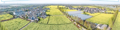 浙江省海寧市硤石街道南漾村油菜花盛開。