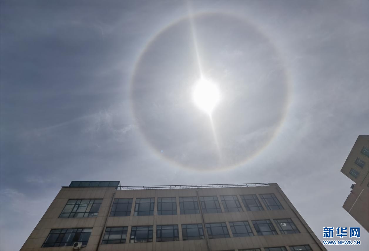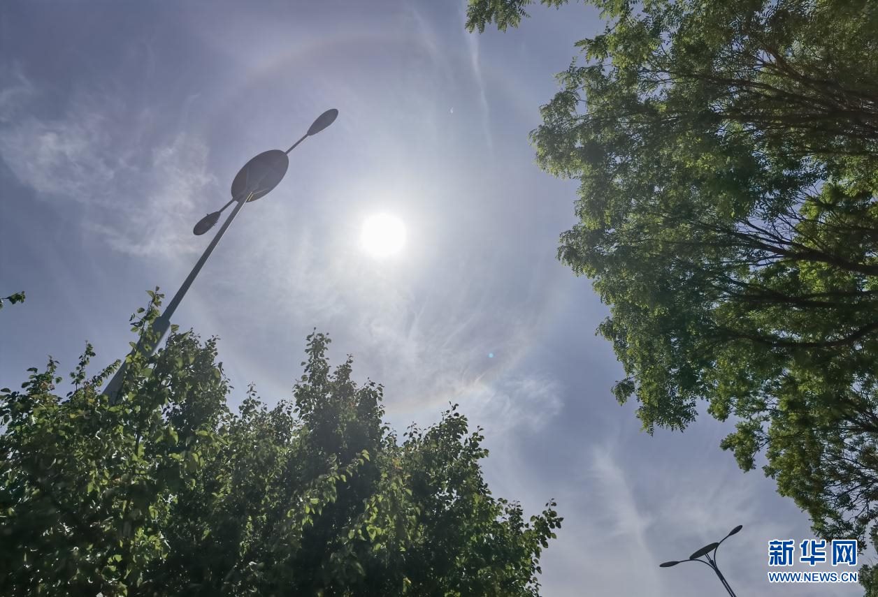 5月25日午后,內(nèi)蒙古自治區(qū)呼和浩特市上空出現(xiàn)日暈,巨大的暈環(huán)圍繞在太陽四周,十分壯觀。新華網(wǎng) 楊騰格爾 攝