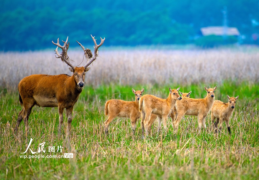近年來(lái),條子泥濕地生態(tài)環(huán)境越來(lái)越好,國(guó)家一級(jí)保護(hù)動(dòng)物野生麋鹿超過(guò)400頭,今年自然產(chǎn)仔達(dá)50頭以上,種群數(shù)量得到有效恢復(fù)。孫家錄攝(人民圖片網(wǎng))