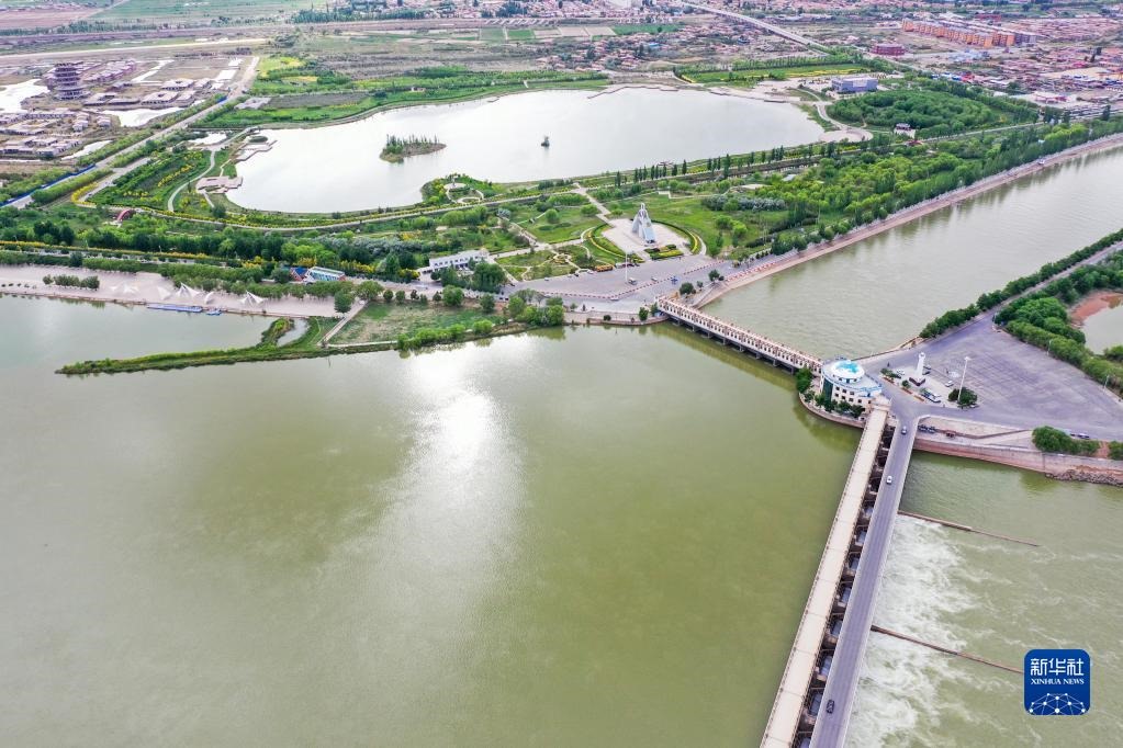 這是三盛公水利樞紐(無人機(jī)照片,6月6日攝)。