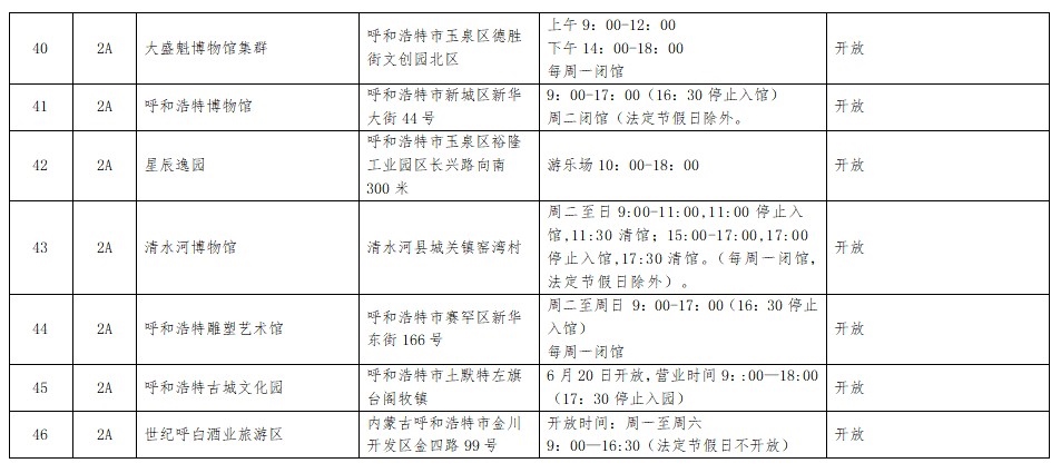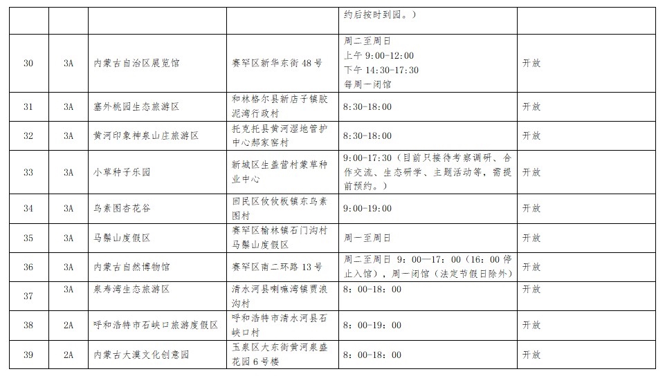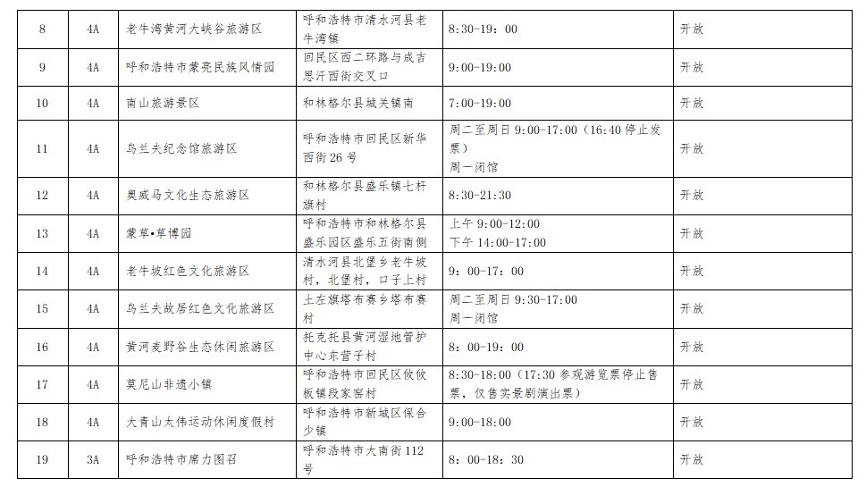 呼和浩特市(演唱會期間)A級旅游景區(qū)開放情況早知道