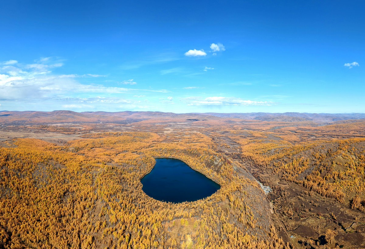9月29日,空中俯瞰內(nèi)蒙古阿爾山國家森林公園駝峰嶺天池 北疆新聞記者 張楊攝影