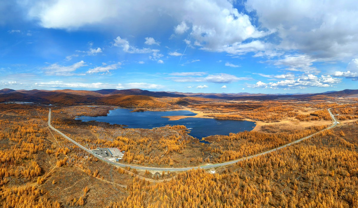 阿爾山,全稱“哈倫—阿爾山”,系蒙古語,意為熱的圣水。阿爾山地處內(nèi)蒙古興安盟、大興安嶺西南麓,有著“濃縮的自然博物館”之譽——草原、森林、溫泉、火山遺跡在此共生,四季皆美,而最迷人的,當屬秋日那抹獨有的“金漸層”,泛黃的落葉松、火紅的楓葉、翠綠的松柏,高空俯瞰,滿目詩意。