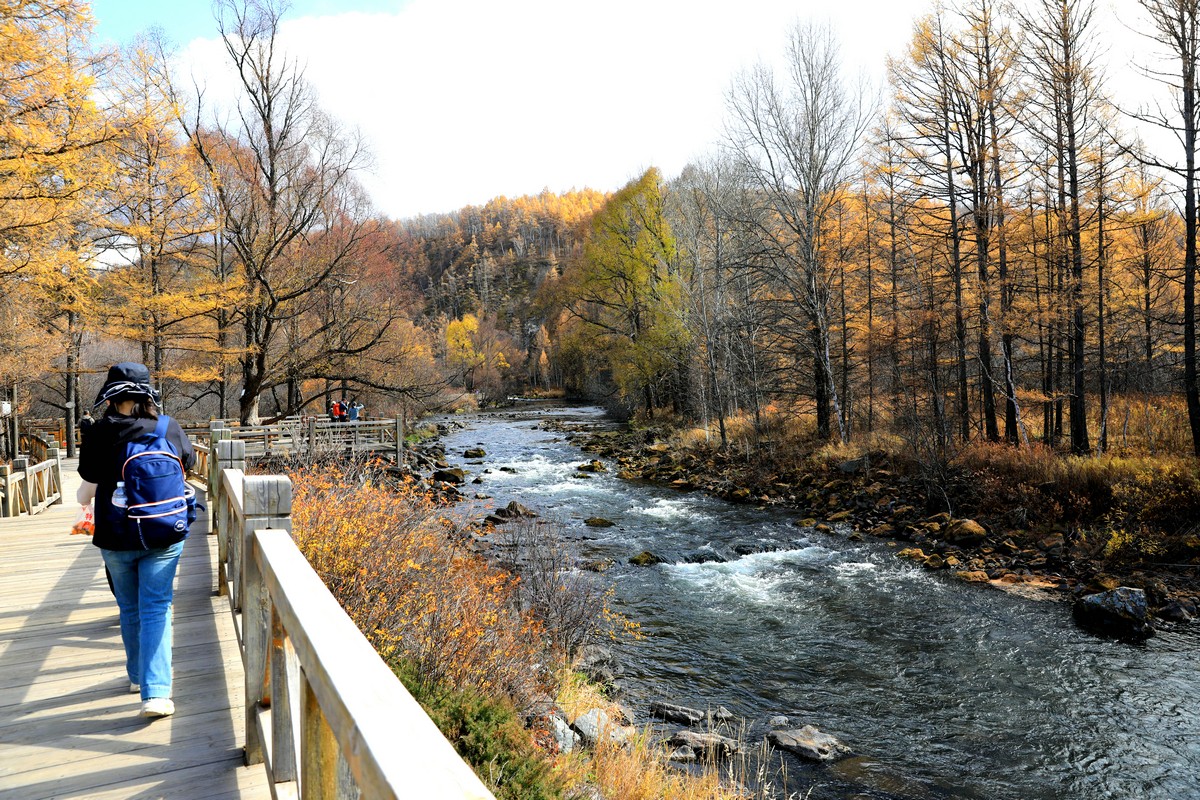 9月29日,游客在內(nèi)蒙古阿爾山國家森林公園三潭峽欣賞秋景 北疆新聞記者 張楊攝影
