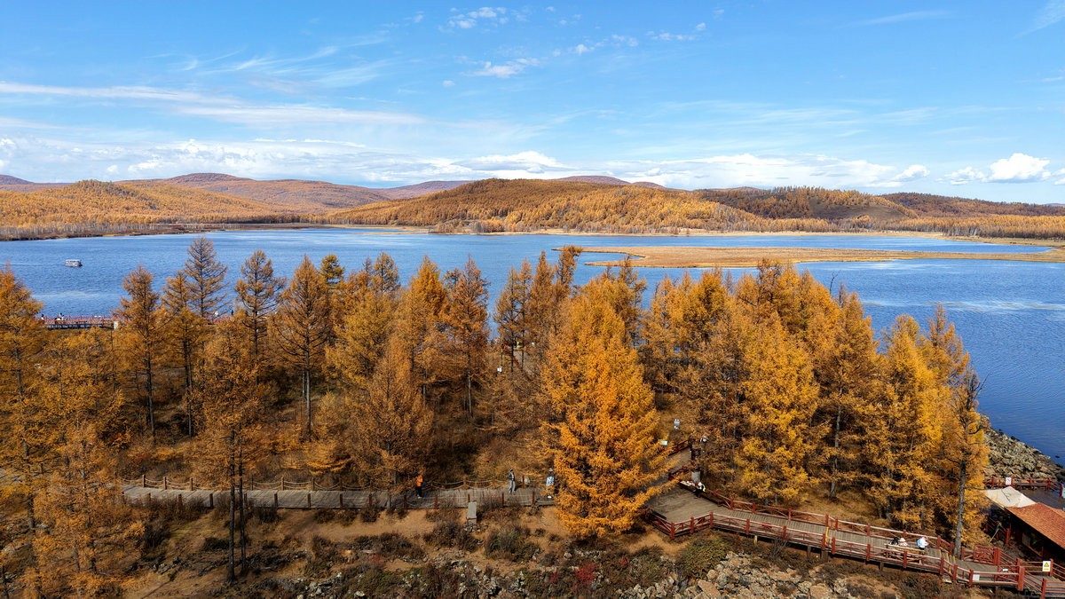 9月29日,空中視角下的內(nèi)蒙古阿爾山國家森林公園烏蘇浪子湖 北疆新聞記者 張楊攝影