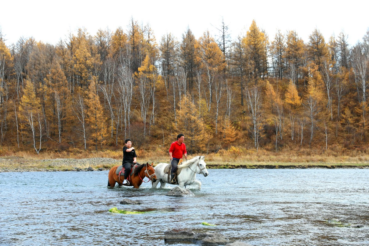 9月29日,游客在內(nèi)蒙古阿爾山國家森林公園不凍河邊體驗騎馬 北疆新聞記者 張楊攝影