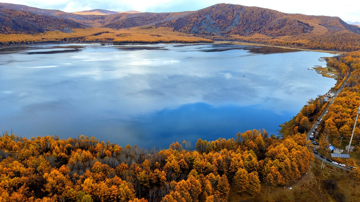 9月29日,空中視角下的內(nèi)蒙古阿爾山國家森林公園杜鵑湖 北疆新聞記者 張楊攝影