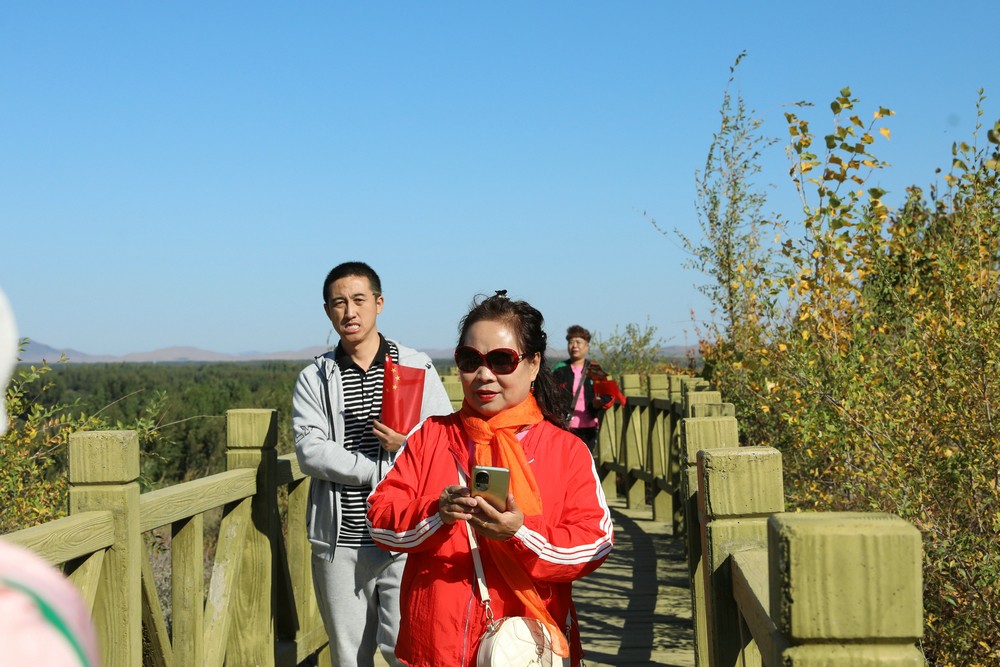 9月26日,游客正在登巴彥查干山賞秋景