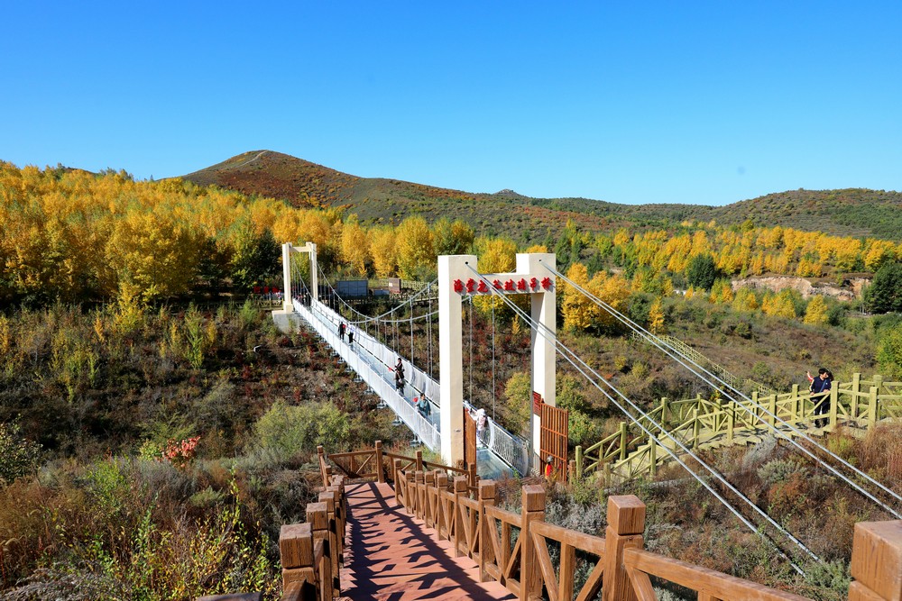 9月26日,游客正在體驗(yàn)海棠花谷玻璃吊橋