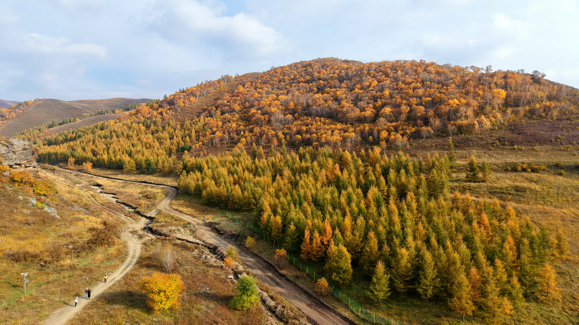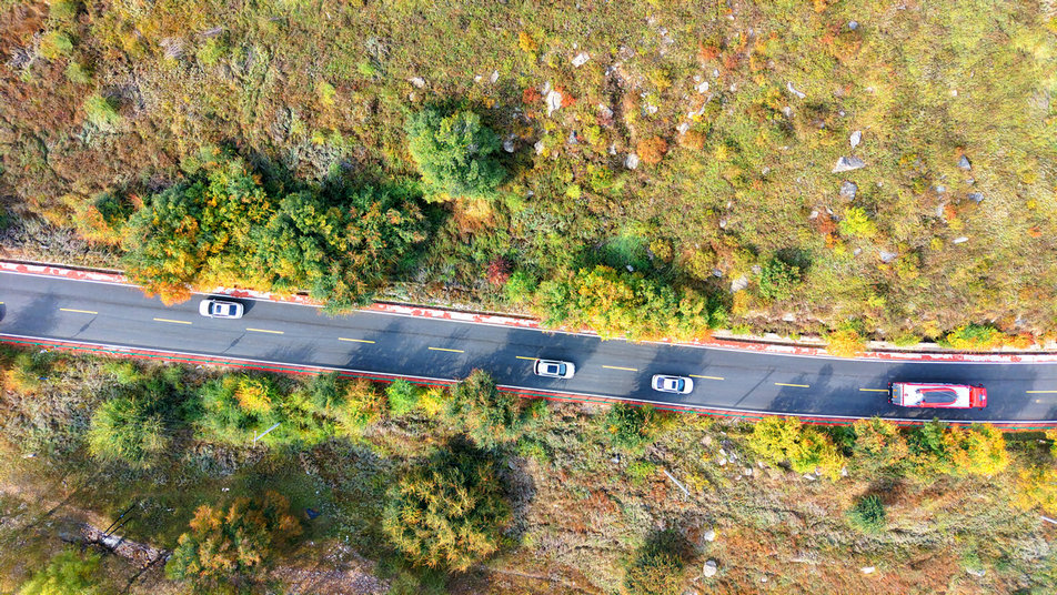 10月3日,內(nèi)蒙古大青山國家級自然保護(hù)區(qū)內(nèi),一片五彩斑斕,金色的白樺、翠綠的松柏、火紅的楓葉……山間谷底,層林盡染,吸引了大量游客自駕前來欣賞秋色。