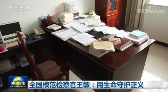 在王敏生前工作的舒城縣人民檢察院,他的辦公室里各種資料鋪滿(mǎn)了辦公桌。