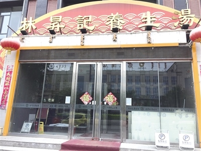 當(dāng)日,記者來到位于賽罕區(qū)后巧報路的林晟記養(yǎng)生湯飯店,看到該飯店的門緊鎖著(如圖)。透過玻璃,記者看到飯店里面的一些桌椅東倒西歪,地面落滿灰塵,里面還擺放著施工用的鐵架子。記者隨后撥打該飯店兩部電話,語音提示號碼已暫停服務(wù)。