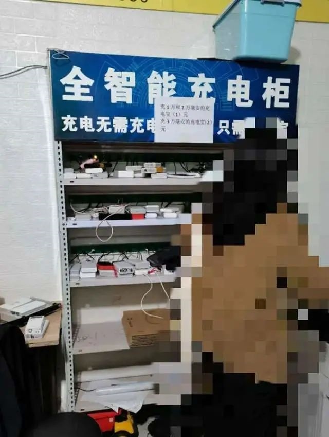 在李紅所提供的經(jīng)營性站點(diǎn)充電柜的照片中,記者看到,五層的充電柜里,上面三層密密麻麻擺放著各種充電寶及手機(jī),在充電柜頂部貼有“全智能充電柜”字樣。