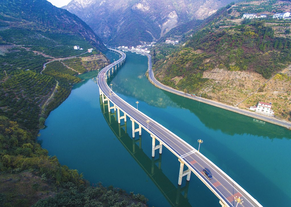 這是湖北省興山縣水上公路(2016年12月18日攝,無(wú)人機(jī)照片)。