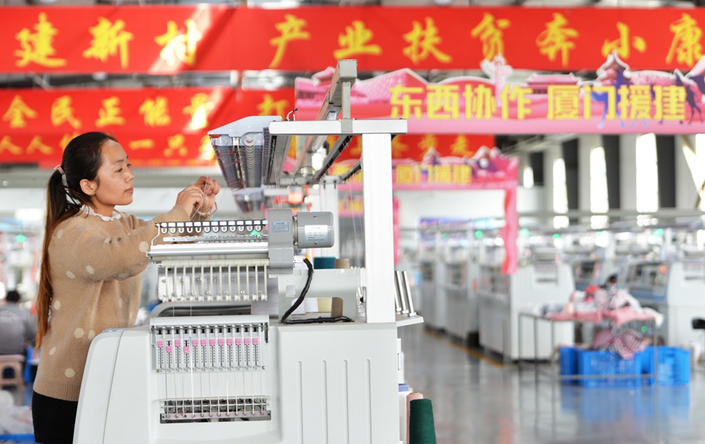 近年來(lái),在東西部扶貧協(xié)作機(jī)制下,福建省廈門(mén)市幫助甘肅省臨夏回族自治州引進(jìn)服裝鞋帽、戶(hù)外用品、文化旅游、農(nóng)產(chǎn)品深加工等企業(yè),吸納當(dāng)?shù)剞r(nóng)民就地就近就業(yè)。新華社發(fā)(史有東 攝)