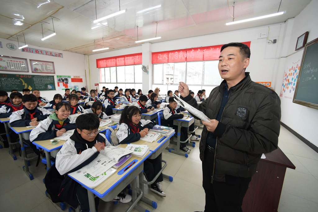 在貴州省黔東南苗族侗族自治州劍河縣第三中學(xué),來(lái)自浙江省杭州市淳安縣的對(duì)口幫扶教師蔡新民在給學(xué)生上物理課(2020年11月26日攝)。