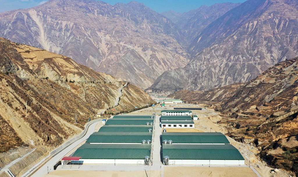 這是青島市幫扶建設(shè)的甘肅隴南市武都區(qū)康大肉兔養(yǎng)殖場(chǎng)(2021年1月19日攝,無(wú)人機(jī)照片)。
