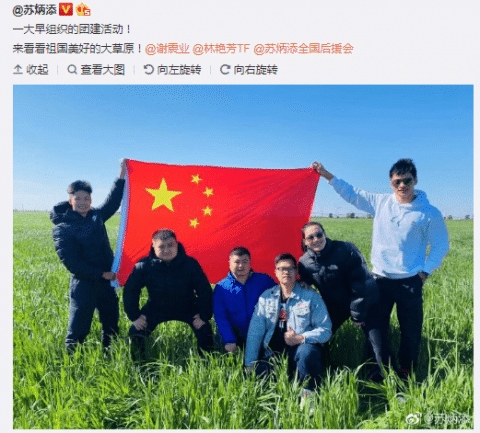 北京時間10月5日,亞洲飛人蘇炳添在社交平臺曬出在內(nèi)蒙古大草原游玩的圖片,他與謝震業(yè)高舉國旗,寫道“一大早組織的團(tuán)建活動!來看看祖國美好的大草原”。