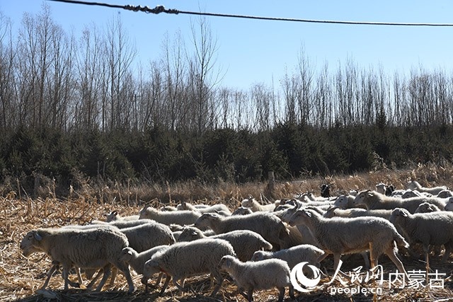 內(nèi)蒙古初冬,暖陽(yáng)微燥。牧民楊寶寶的100多只羊正在院子前的空地上曬太陽(yáng)。雪白的羊群映得小院磚明瓦亮。楊寶寶說話時(shí),嘴角總是上揚(yáng)的,黝黑的皮膚上笑出深深的褶子。