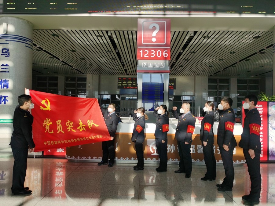 1月17日,春運首日,集寧站烏蘭察布站組織黨員突擊隊開展宣誓活動。
