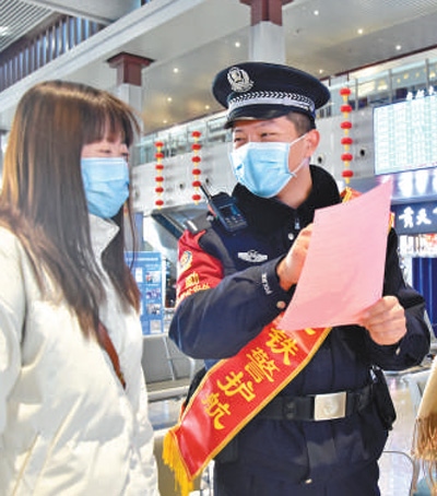 電子臨時身份證的推行增強(qiáng)了旅客出行的便捷性。圖為春運(yùn)首日,大同鐵路公安處民警為旅客講解電子臨時身份證在手機(jī)軟件上的使用方法。